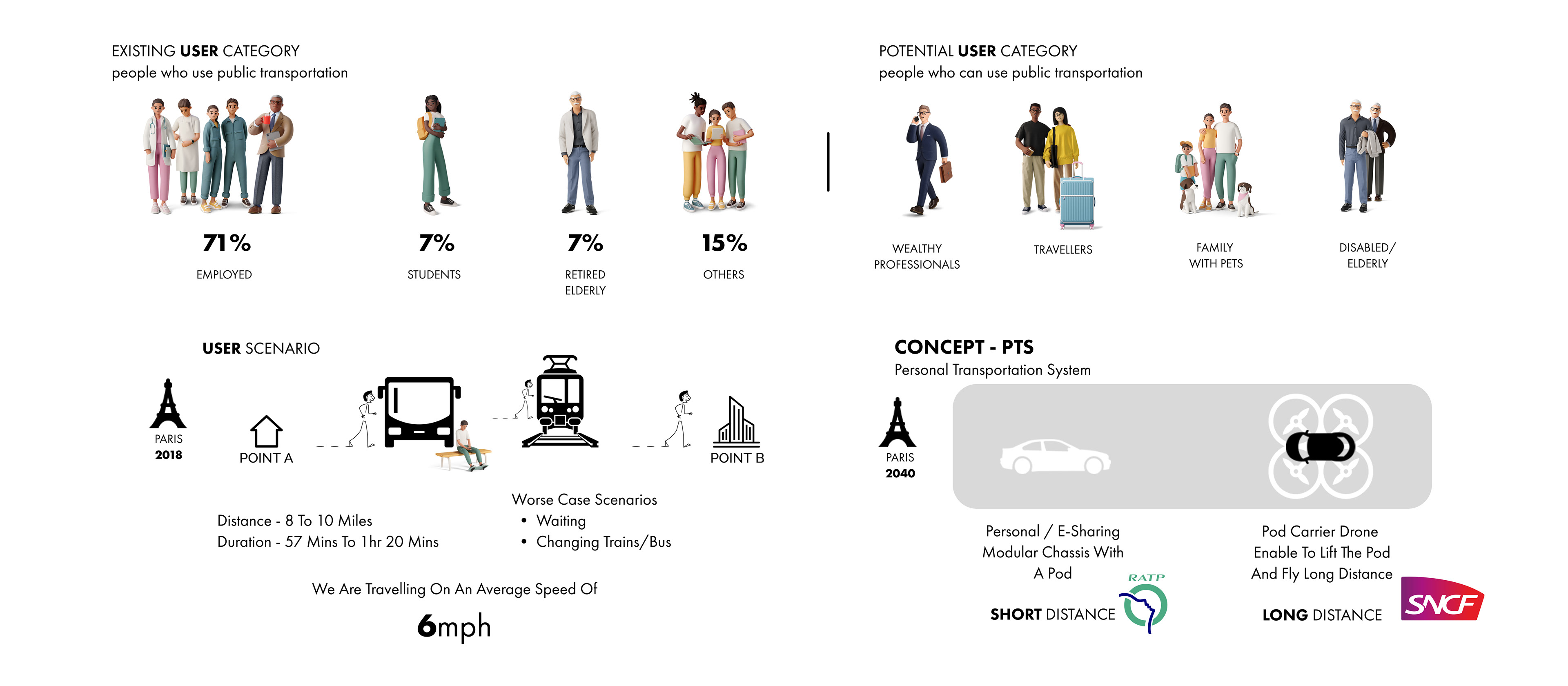 The SoloMétro user journey offers a seamless day: in the morning the rider commutes safely and swiftly through dense city streets in a compact, weather-protected pod; midday they swap the rear module to carry groceries or parcels with ease, by evening the vehicle’s high-visibility lighting and safety cell provide stress-free travel home, before recharging overnight bridging the gap between bulky cars and outdated public transit.