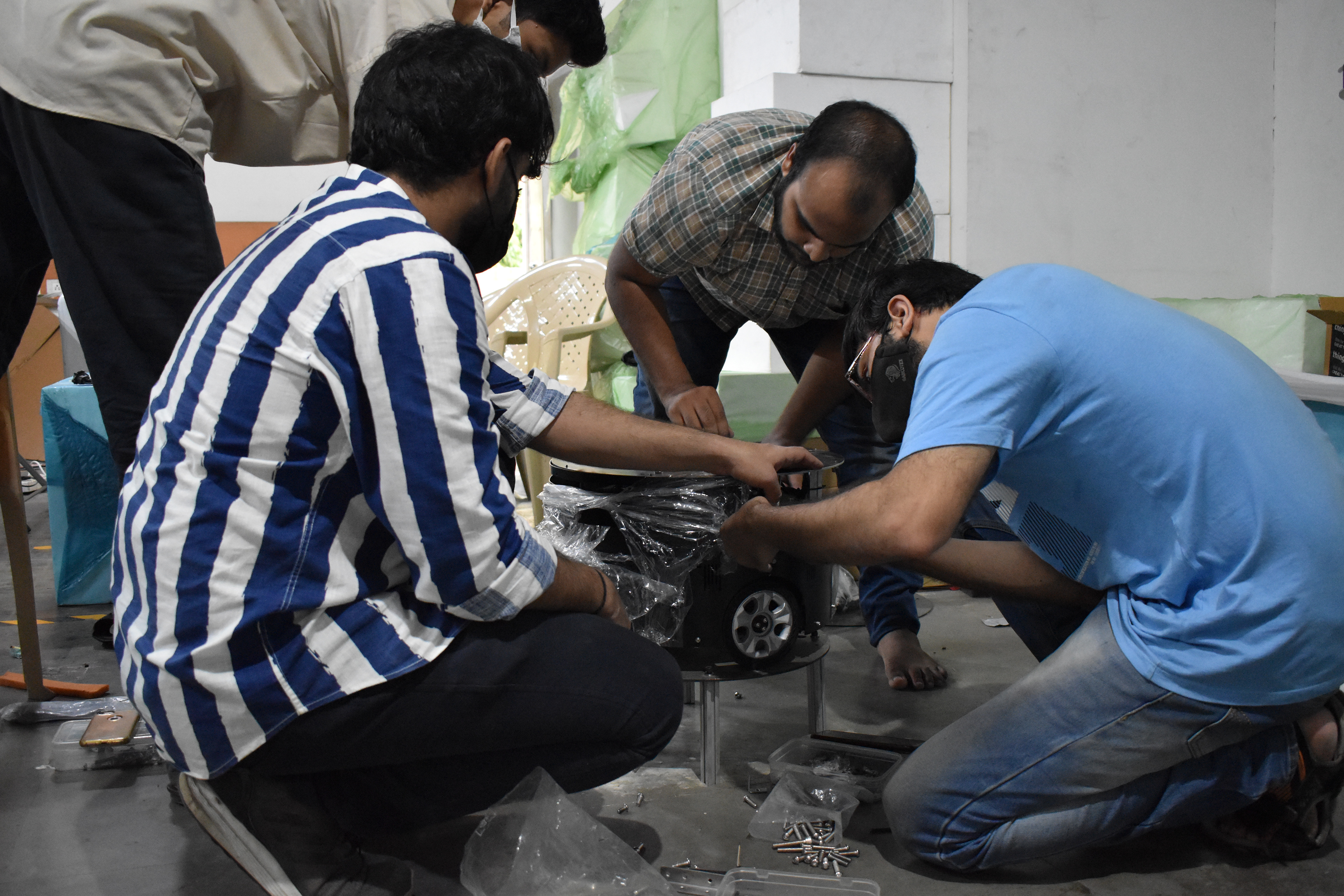 After validating the effectiveness of static UV disinfection, we began integrating it onto a robotic base, transforming the unit into an autonomous system. With limited resources and supply chain disruptions during the pandemic, we repurposed existing trays and body components to build the first version, essentially crafting a mobile robot from scratch, using whatever was accessible.