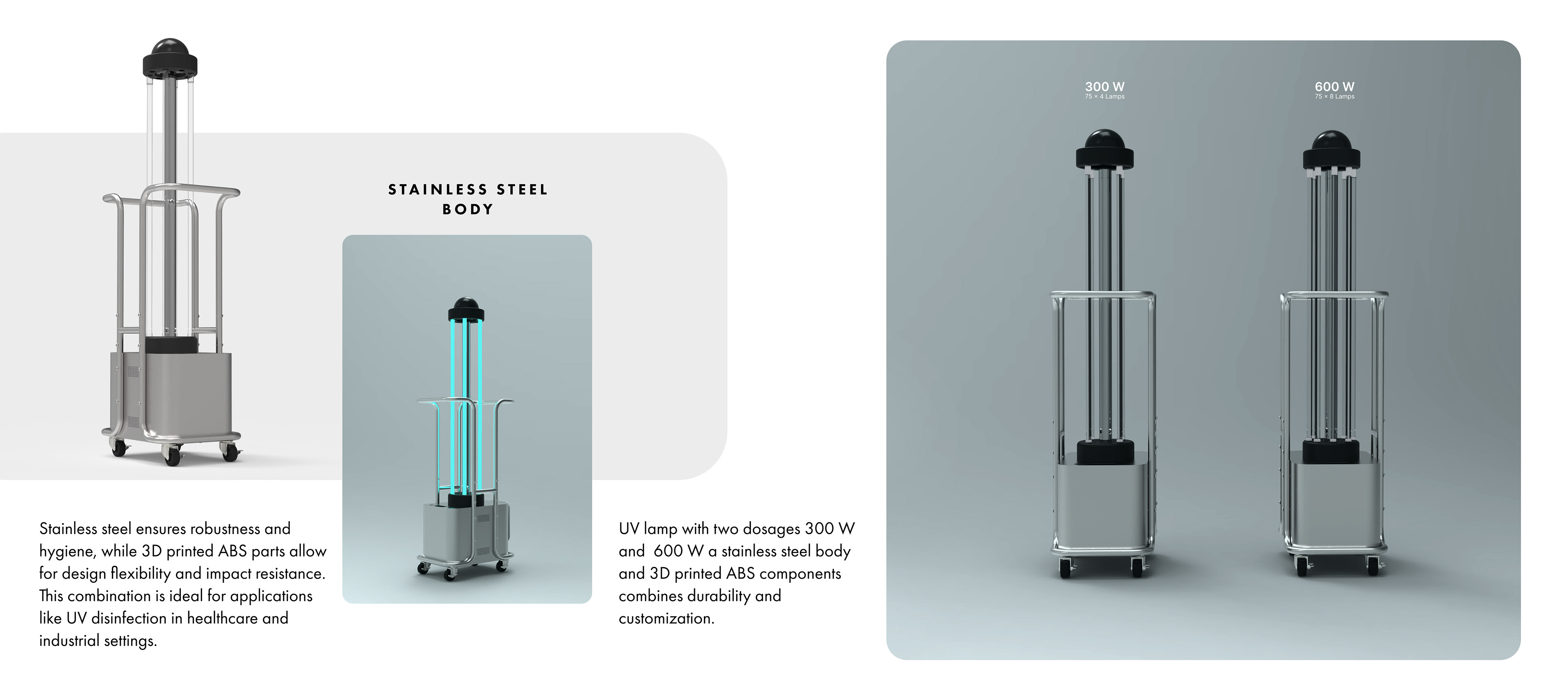 This project began at the height of the COVID-19 pandemic, when hospitals were urgently looking for fast, contactless disinfection solutions. To understand the effectiveness of UV-C technology, we first developed a static UV disinfection lamp, a simple yet powerful unit that helped validate the use of ultraviolet light in eliminating pathogens from critical spaces.